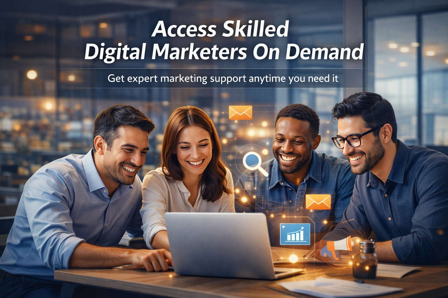 Access skilled digital marketers on demand to execute high-impact campaigns and accelerate business growth across the United States. Our on-demand marketing professionals bring hands-on expertise in SEO, paid advertising, social media, content marketing, analytics, and marketing automation—helping businesses move faster without the overhead of full-time hiring.